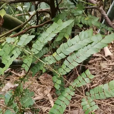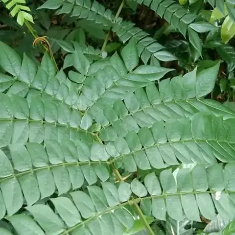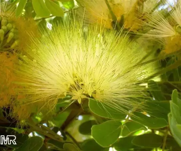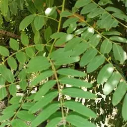 高8-12米;树皮粗糙;嫩枝密被短柔毛,老枝无毛。二回羽状复叶;总叶柄近基部及叶轴上羽片着生处均有腺体;叶轴被短柔毛或无毛;羽片2-4对,长6-15厘米;小叶4-8对,长椭圆形或略斜的长椭圆形,长2-4.5厘米,宽(0.9-)1.3-2厘米,先端圆钝或微凹,两面无毛或下面疏被微柔毛,中脉略偏于上缘。