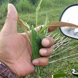播种:用表土、沙、有机肥拌匀后起苗床。播种前先用沸水浸种1分钟,后在冷水中浸泡24小时后捞出晾干即可播种。采用撒播,用木板将种子压实后覆土,以不见种子为度。每天早晚各淋水1次,保持床面湿润而不积水,播种后3天开始发芽,发芽时间延至第5天,发芽率达73%。当小苗长出第1对真叶后移入营养杯中培育,适当遮阴,加强水肥管理,3个月后当苗高30厘米时即可出圃。在海南4月份播种育苗,当年7月份出圃造林。