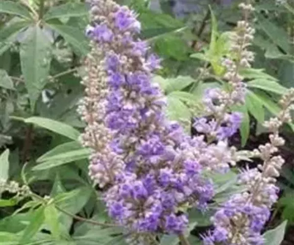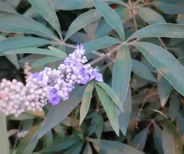 穗花牡荆(学名:Vitex agnus-castus Linn.)是马鞭草科,牡荆属灌木,高可达米;小枝四棱形,掌状复叶,对生,小叶片狭披针形,顶端渐尖,基部楔形,表面绿色,聚伞花序排列成圆锥状,苞片线形,有毛;花柄极短或近无;花萼钟状,花冠蓝紫色,外面有毛和腺点;花丝基部有柔毛;花柱与花丝近等长或稍短,子房顶端有腺点。果实圆球形。7-8月开花。