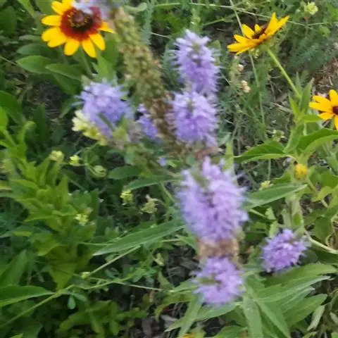 聚伞花序排列成圆锥状,长8-18厘米;苞片线形,有毛;花柄极短或近无;花萼钟状,长约3毫米,顶端有5齿,齿三角状,近等大,外面有灰白色绒毛和腺点;花冠蓝紫色,长约1厘米,外面有毛和腺点;雄蕊4-5,花丝基部有柔毛;花柱与花丝近等长或稍短,柱头2裂;子房顶端有腺点。果实圆球形。花期7-8月。