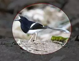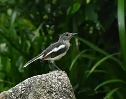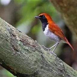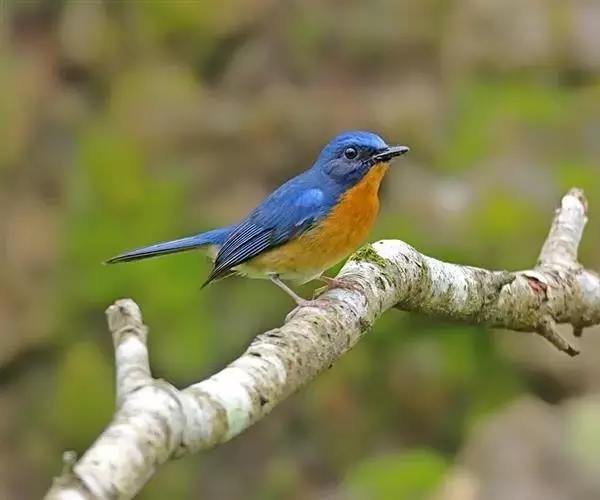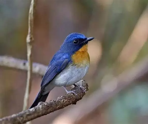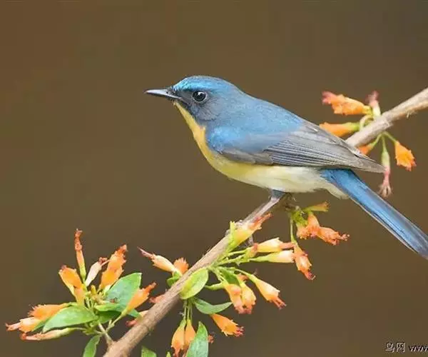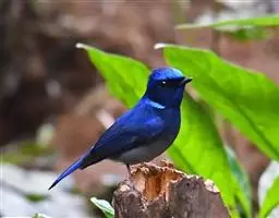 山蓝仙鹟(学名:Cyornis banyumas):小型鸟类,体长13-15厘米。雄鸟额基和眼先黑色,颏橙棕色,仅颏尖为蓝黑色,喉、胸、上腹和两胁亦为橙棕色,下体白色范围较小,仅局限于下腹和尾下覆羽。雌鸟上体少黄色,颏、喉、胸概为锈红色,喉无白色。