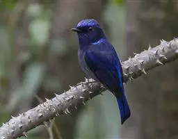 纯蓝仙鹟:体长16-17厘米,体重18-23克。是一种体型略大的浅蓝色或近褐色的鹟。雄鸟上体亮丽钴蓝,…