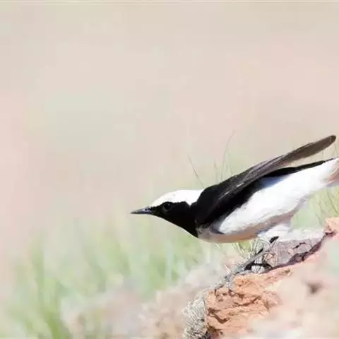 黑喉石鵖,雀形目鹟科石鵖属小型鸣禽,俗名谷尾鸟、黑喉石。其体色为黑褐色。雄鸟头部、背部、两翼及尾黑色,…