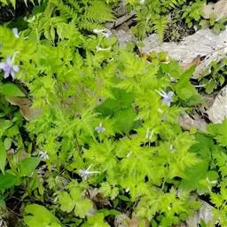 康定翠雀花是毛茛科翠雀属多年生草本植物,茎高可达80厘米,等距地生叶,基生叶在开花时常枯萎,叶片五…