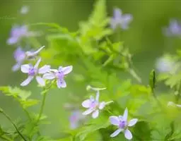 翠雀是毛茛科翠雀属的多年生草本植物。茎高可达65厘米;基生叶及茎下部叶具长柄,叶圆五角形,…