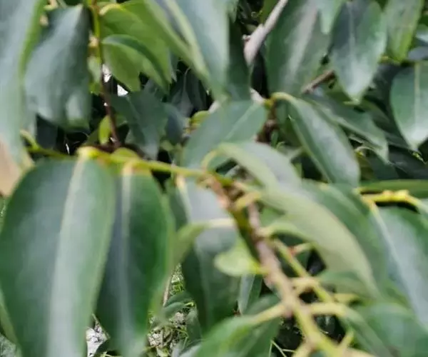 该种冬芽先端尖;叶椭圆形至长椭圆形,侧脉每边7-10条;果几无柄,近球形,直径1-2厘米,初熟时黄色,渐变蓝黑色,常被白色薄蜡层,宿存萼裂片4,先端钝圆。