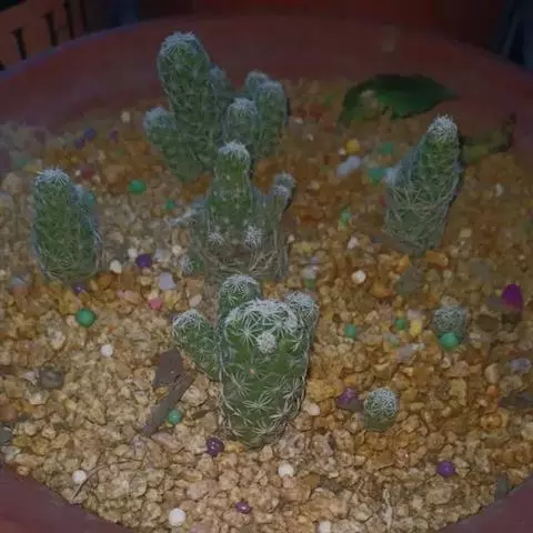 银手球,仙人掌科乳突球属,植株群生,小短圆筒形。原产墨西哥伊达尔戈州。