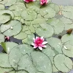 耐寒睡莲能否正常生长,水位的控制是重要因素之一。耐寒睡莲随着生长期的不同对水位的要求各不相同,要注意对水位的控制。由于水温对睡莲的生长开花有直接影响,生长初期由于叶柄短,水位尽量浅,以不让叶片暴露到空气中为宜,以尽快提高水温,促进根系生长,提高成活率;随着叶片的生长,逐步提高水位,到达生长旺期,水位达到最大值,这样使叶柄增长,叶片增大,有助于营养物质储存;进入秋季,降低水位,提高水温,使叶片得到充足的光照,增强光合作用,以促进睡莲根茎和侧芽生长,提高翌年的繁殖体数量;秋末天气转凉后,逐渐加深水位,保持不没过大部分叶片为宜,以控制营养生长;水面结冰之前水位一次性加深,根据历史最大结冰厚度而定,保持睡莲顶芽在冰层以下,以安全越冬。