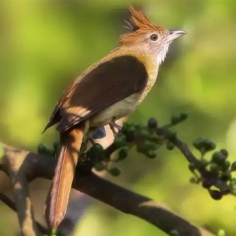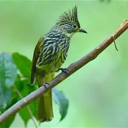 纵纹绿鹎,是鹎科鹎属的一种动物,是体型中等大小鸟类,体长20-24厘米。头绿褐色具明显的冠羽,…