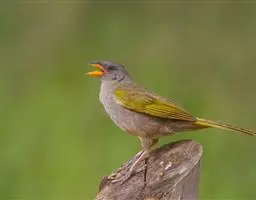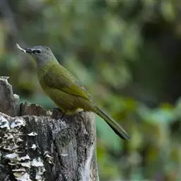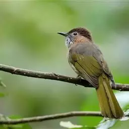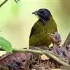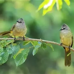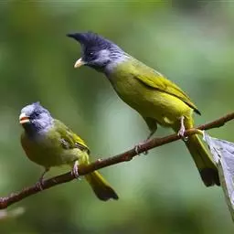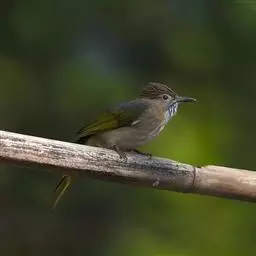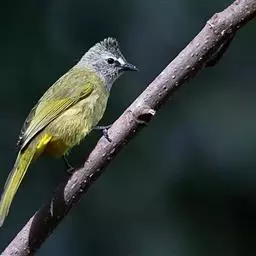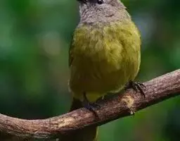 灰短脚鹎(学名:Hemixos flavala),体长19-22cm。头顶和短的羽冠黑色,上体暗灰色,耳羽灰褐色,两翅表面橄榄绿黄色。大覆羽和内侧飞羽外翈橄榄黄色,在翅上形成大块绿黄色斑,在灰色的上体极为醒目。尾暗褐色具橄榄绿色羽缘。颏、喉及腹部中央和尾下覆羽白色,胸和两胁深灰色。主要以植物性食物为食,尤以植物果实和种子为主。