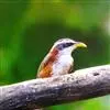 栗背短脚鹎,体长18-22厘米。上体栗褐,头顶和羽冠黑色。背栗色、翅和尾暗褐色具白色或灰白色羽缘。…
