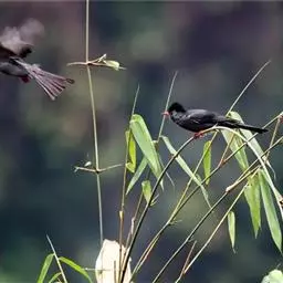 黑短脚鹎:是鸟纲、鹎科的中型鸟类,体长22-26厘米。嘴鲜红色,脚橙红色,尾呈浅叉状。羽色有两种色…