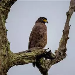 鹰雕,是隼形目鹰科鹰雕属大型猛禽,俗称熊鹰、赫氏角鹰。其上体暗褐色,头后冠羽常竖立起,…