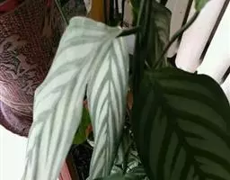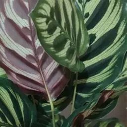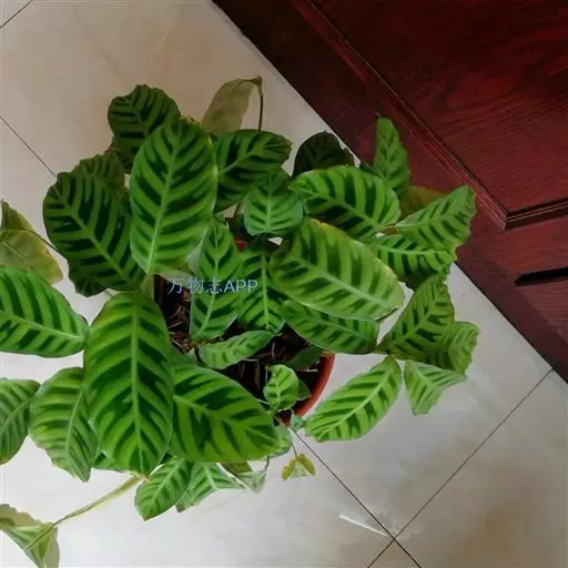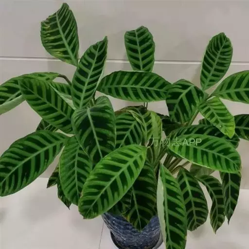 绒叶肖竹芋〔学名:Calathea zebrina (Sims) Lindl.〕是竹芋科,肖竹芋属多年生中等大草本植物,株高可达1米。叶片长圆状披针形,不等侧,叶面深绿,有黄绿色的条纹,天鹅绒般,叶背幼时浅灰绿色,老时淡紫红色,头状花序,花冠紫堇色或白色,子房无毛。5-6月开花。