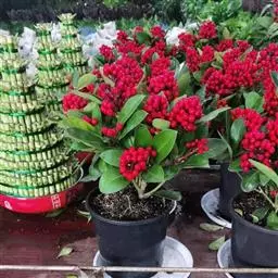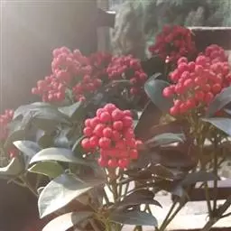 常绿灌木或小乔木。叶椭圆形,两端尖。果扁圆形,朱红色;味甜,可食。产自中国东南部,广东地区大量盆栽。