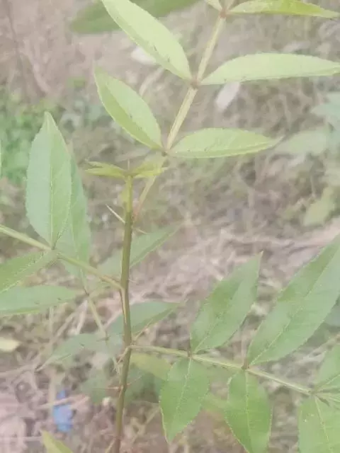 青花椒属灌木;枝灰褐色,有短小皮刺。小叶椭圆形或椭圆状披针形,边缘有细锯齿,齿缝间有腺点,表面绿色…