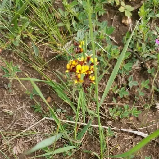 花序伞形,有时长达2厘米,具花(4)6-9(-15)朵;总花梗腋生,通常比叶长,挺直,有时也纤细并比叶短;苞片刺毛状,长1-2毫米;花长(5)6-9毫米;花梗长1.5-4毫米,被柔毛;萼钟形,长2-4毫米,宽1.5-2毫米,被柔毛,萼齿披针状锥尖,与萼筒等长或短;花冠黄褐色,中央深红色至紫色条纹,旗瓣倒卵状长圆形、倒心形至匙形,先端凹头,翼瓣稍短,长圆形,龙骨瓣明显短,卵形,均具长瓣柄;子房线形,无毛,花柱短,胚珠4-8粒。荚果长圆形或卵状长圆形,扁平,长8-15(-20)毫米,宽3.5-5(-7)毫米,先端钝急尖,具短喙,基部狭尖并稍弯曲,具短颈,脉纹横向倾斜,分叉,腹缝有时具流苏状的狭翅,熟后变黑;有种子2-6粒。