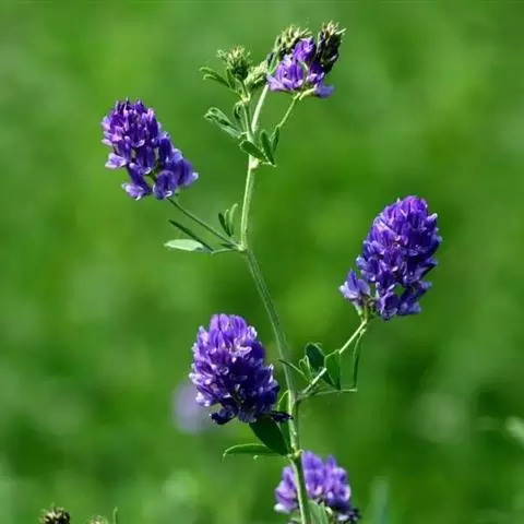 可用于预防和治疗关节炎、痛风、肝炎、胆囊炎、肾结石、糖尿病、心脑血管、癌症等病征;将花苜蓿的种子研碎外敷,还可以用于治疗烫伤与蚊虫叮伤;此外,用花苜蓿治疗妇女绝经前综合征、贫血、水肿及消化不良症等疾病同样具有令人满意的效果。