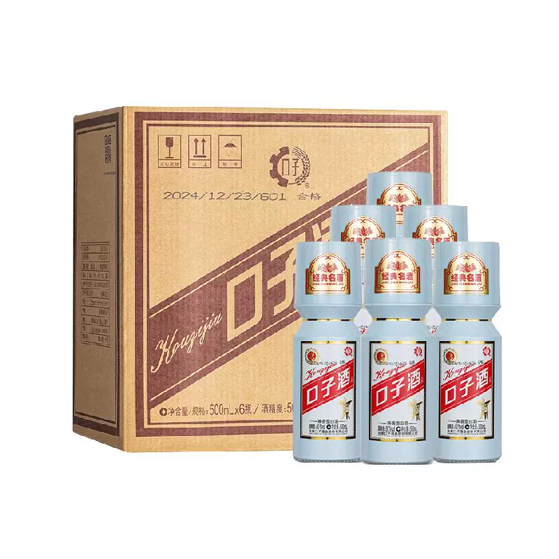 口子窖酒以优质高粱、大米、玉米、糯米、小麦为原料,采用口子窖酒大曲为糖化、发酵、生香剂,续楂混蒸老五甑,分别入泥窖双轮、单轮发酵,入石板窖多轮发酵,发酵期120天、60天、30天,缓慢蒸馏,量质摘酒,分级贮存,再经勾兑、陈酿、包装出厂。基酒酒龄不少于五年,调味酒酒龄不少于十年。