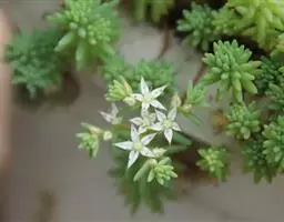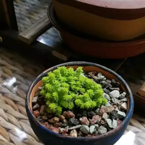薄雪万年草别名矶小松,景天科景天属多年生草本植物,其细小的蓝绿色棒状叶片环绕生长于茎端,…