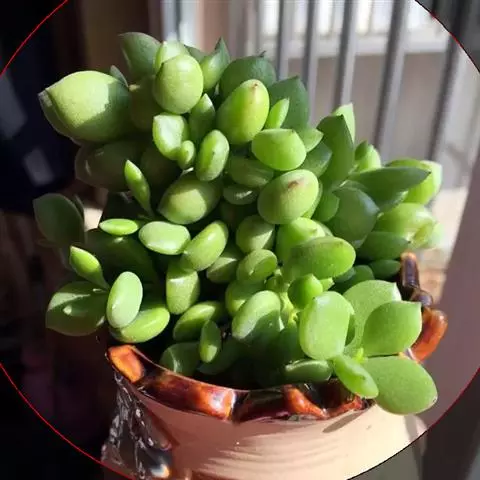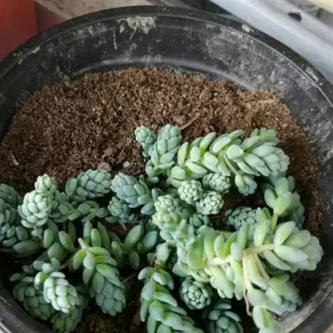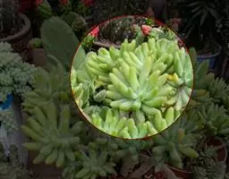 蓝黛莲是一种景天科厚叶草属植物。叶片呈略扁的圆柱形,排列成莲座状;颜色为灰绿色,…