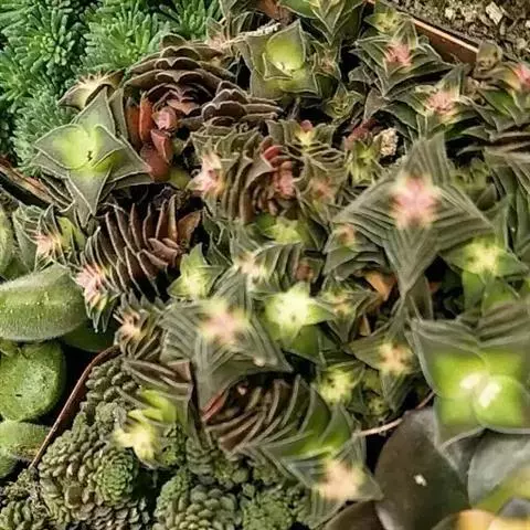 灯美人是景天科的园艺品种,多肉植物。叶片近柱状,丛生,在日照时间长、温差大的环境下会呈现橙粉色。
