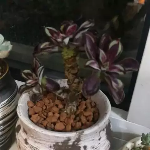黑王子锦是景天科拟石莲花属的多年生肉质草本植物,是多肉植物的一种,为黑王子的锦化品种,较为稀有。