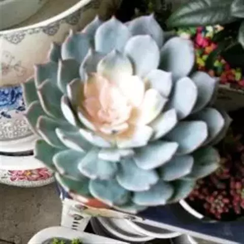 蓝石莲是景天科、拟石莲花属的多肉植物。茎部粗壮,成熟植株茎部木质化。叶片莲座型密集排列,株径不会很大,…