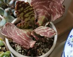 江户紫,景天科伽蓝菜属草本植物,是多年生草本花卉。花白色,但栽培中很少能见到花,常作观叶植物栽培。…