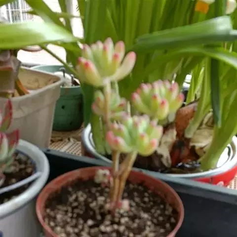 莲花掌,是景天科莲花掌属多年生亚灌状植物。莲花掌茎直立,多分枝;叶片青绿色,倒长披针形,边缘红色,…