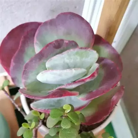 红缘莲花掌属蔷薇目、景天科植物,原产大西洋的加那利群岛。质厚,蓝绿色,被白霜,叶缘红褐色。聚伞花序,…