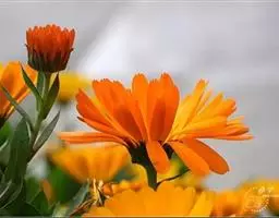 金盏花 为菊科一年生或越年生草本植物 ,别名: 山金菊、水涨菊、金盏菊和大金盏花等 。