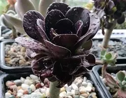 黑法师是景天科莲花掌属植物,自然界不存在分布。紫黑色的叶片呈莲座状层叠排列,给人以庄重神秘之感,…
