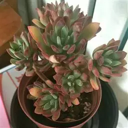 大和锦是景天科拟石莲花属的多肉植物。肉质叶排成紧密的莲座状,广卵形至散三角卵形,背面突起呈龙骨状,…