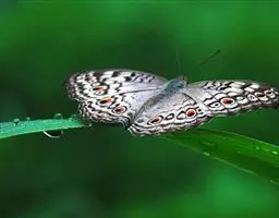 鳞翅目(Lepidoptera)昆虫纲中最常见的一目。色彩美丽,成虫体肢和翅满被鳞片和毛,故2对翅为鳞翅,且前翅大于后翅;虹吸式口器(原始的小翅蛾类上颚发达,为咀嚼式);触角丝状、双栉状、栉状、棍棒状等多型;复眼发达,单眼2个或无单眼。全变态。幼虫蠕虫状,具3对胸足,腹足和尾足不超过5对。幼虫体上生有刚毛,对刚毛的排列和命名称毛序,在分类上有重要意义。约有 112000种,包括蛾类和蝶类。