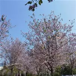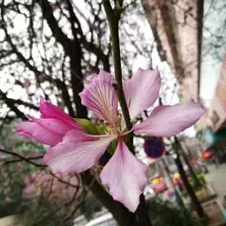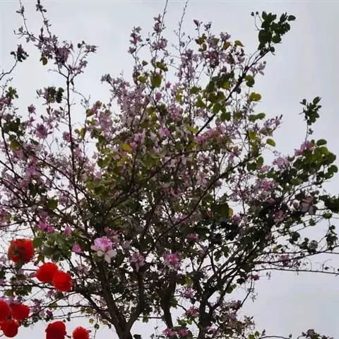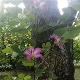 洋紫荆:落叶乔木;树皮暗褐色,近光滑;幼嫩部分常被灰色短柔毛;枝广展,硬而稍呈之字曲折,无毛。叶近…