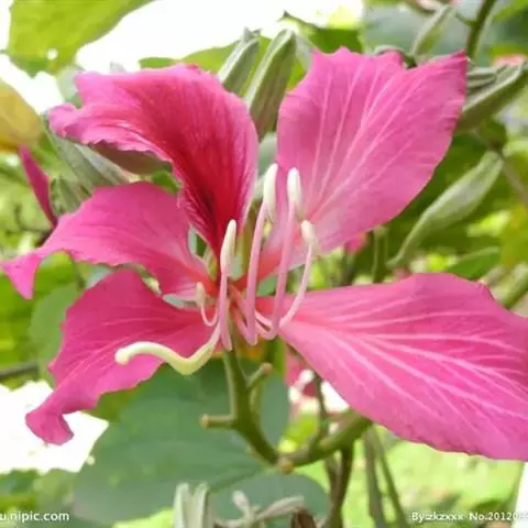 红花羊蹄甲,为豆科羊蹄甲属植物,别名艳紫荆、洋紫荆。半落叶乔木,高达了~10 m,叶草质,…