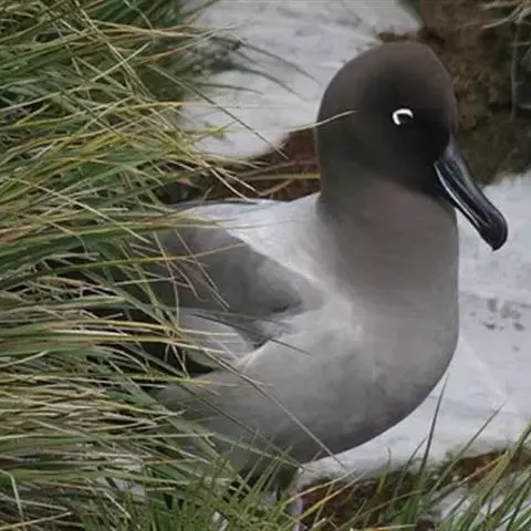 黑背信天翁是一种中型的信天翁,81厘米长,翼展195-215厘米,体重2210-2800克,寿命12年。是一种有极长翼羽的大鸟。雄性略大。特征为自颏至臀部为全白色,但翼上及背深色。翼下主要为白色,具深色边缘,覆羽具近黑色纵纹。眼及眼周深色。飞行时脚略伸出尾后。幼鸟似成鸟但嘴灰色较重。