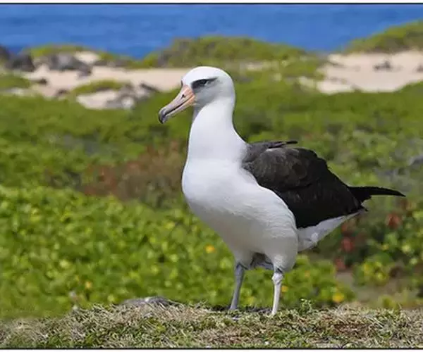 黑背信天翁(学名:Phoebastria immutabilis):是一种中等体型的信天翁,81厘米长,体重2210-2800克,是一种有极长翼羽的大鸟,翅狭长,翼展195-215厘米。雄性略大。鼻孔侧位,不愈合。特征为自颏至臀部为全白色,但翼上及背深色。翼下主要为白色,具深色边缘,覆羽具近黑色纵纹。
