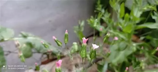 一年生或二年生草本,高30-70厘米,全株无毛,微被白粉,呈灰绿色。根为主根系。茎单生,直立,上部分枝。叶片卵状披针形或披针形,长3-9厘米,宽1.5-4厘米,基部圆形或近心形,微抱茎,顶端急尖,具3基出脉。伞房花序稀疏;花梗细,长1-4厘米;苞片披针形,着生花梗中上部;花萼卵状圆锥形,长10-15毫米,宽5-9毫米,后期微膨大呈球形,棱绿色,棱间绿白色,近膜质,萼齿小,三角形,顶端急尖,边缘膜质;雌雄蕊柄极短;花瓣淡红色,长14-17毫米,宽2-3毫米,爪狭楔形,淡绿色,瓣片狭倒卵形,斜展或平展,微凹缺,有时具不明显的缺刻;雄蕊内藏;花柱线形,微外露。蒴果宽卵形或近圆球形,长8-10毫米;种子近圆球形,直径约2毫米,红褐色至黑色。花期5-7月,果期6-8月。