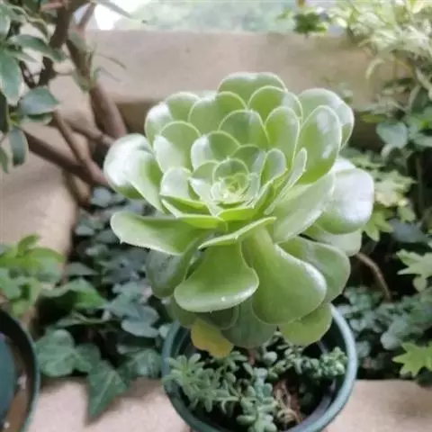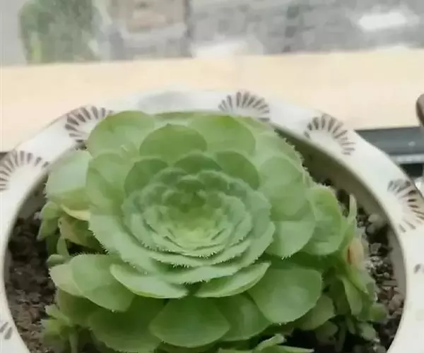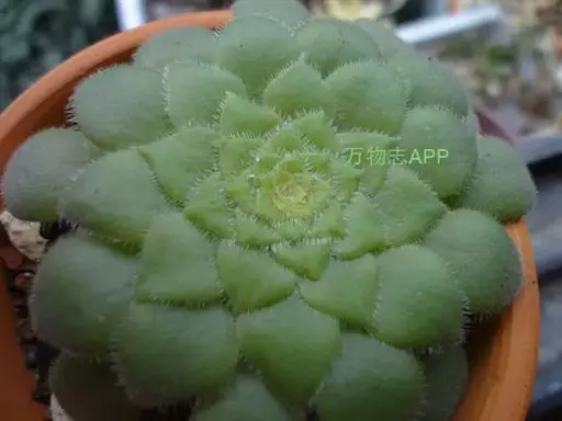 明镜为多年生肉质植物,植株低矮扁平,叶片草绿色,叶边缘生有白色绒毛,叶片无叶柄,呈匙形。 它的叶片比较薄,一点不厚实,叶片上有一层绒毛,叶片呈平板型排列,不会向上聚拢生长,只能不断增大直径。