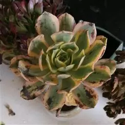 红缘莲花掌属蔷薇目、景天科植物,原产大西洋的加那利群岛。质厚,蓝绿色,被白霜,叶缘红褐色。聚伞花序,…