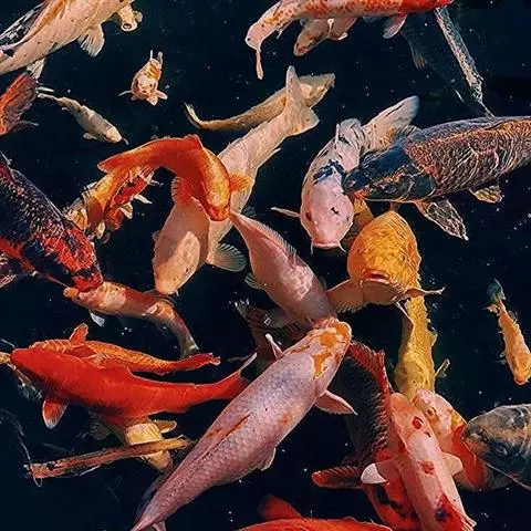 锦鲤在中国已有1000余年的养殖历史,其种类有100多个,锦鲤各个品种之间在体形上差别不大,主要是根据身体上的颜色不同和色斑的形状来分类的。它具有红白、黄、蓝紫、黑金、银等多种色彩,身上的斑块几乎没有完全相同的。