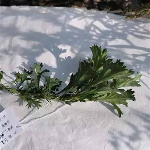 艾叶第1茬收获期为6月初,于晴天及时收割,割取地上带有叶片的茎枝,并进行茎叶分离,摊晒在太阳下晒干,或者低温烘干,打包存放。7月中上旬,选择晴好天气收获第2茬,下霜前后收取第3茬,并进行田间冬季管理。