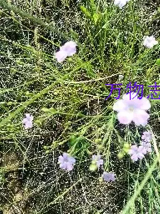 野亚麻,又名繁缕亚麻。一年生或二年生草本,高20-90厘米。茎直立,圆柱形,基部木质化,有凋落的叶痕点,不分枝或自中部以上多分枝,无毛。叶互生,线形、线状披针形或狭倒披针形,长1-4厘米,宽1-4毫米,顶部钝、锐尖或渐尖,基部渐狭,无柄,全缘,两面无毛,6脉3基出。单花或多花组成聚伞花序;花梗长3-15毫米,花直径约1厘米;萼片5,绿色,长椭圆形或阔卵形,长3-4毫米,顶部锐尖,基部有不明显的3脉,边缘稍为膜质并有易脱落的黑色头状带柄的腺点,宿存;花瓣5,倒卵形,长达9毫米,顶端啮蚀状,基部渐狭,淡红色、淡紫色或蓝紫色;雄蕊5枚,与花柱等长,基部合生,通常有退化雄蕊5枚;子房5室,有5棱;花柱5枚,中下部结合或分离,柱头头状,干后黑褐色。蒴果球形或扁球形,直径3-5毫米,有纵沟5条,室间开裂。种子长圆形,长2-2.5毫米。花期6-9月,果期8-10月。