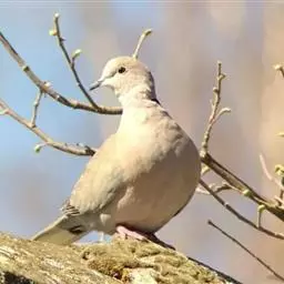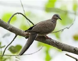 欧斑鸠体长27厘米,是一种体型略小的粉褐色斑鸠。颈侧具多黑白色细纹的斑块,翼覆羽深褐,…