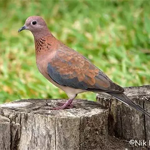 棕斑鸠,是鸽形目鸠鸽科斑鸠属鸟类。整个头和颈淡粉红色,头顶和前额较暗,颊、喉较淡,…