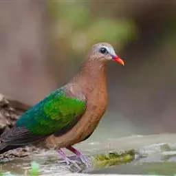 绿背金鸠体长约25厘米,是中等体型、尾甚短的地栖型斑鸠。下体粉红,头顶灰色,额白,腰灰,两翼具亮绿色。…