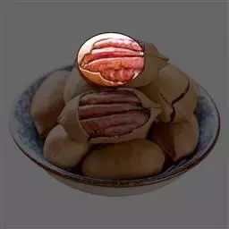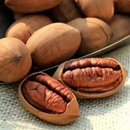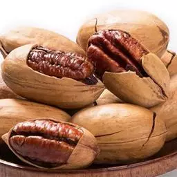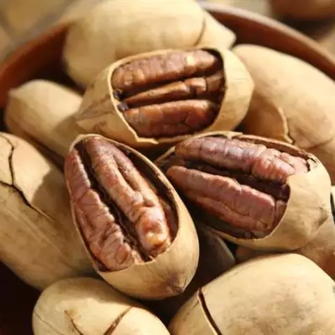 山核桃核仁松脆味甘,香气逼人,可榨油、炒食,也可作为制糖果及糕点的佐料。山核桃果仁中含有7.8-9.6%的蛋白质,人体必需的氨基酸占7种以上且含量高达25%以上,还含有22种人体所需的微量元素,其中钙、镁、磷、锌、铁含量十分丰富。据资料分析,每公斤核桃仁等于9公斤鲜牛奶或5公斤鸡蛋、2公斤牛肉的营养价值,而且它较牛奶、鸡蛋、牛肉的营养易为人体吸收。核仁还具有润肺补气、养血平喘、润燥化痰去虚寒诸功效。 [7-8] 1、核桃仁含有较多的蛋白质及人体营养必需的不饱和脂肪酸,这些成分皆为大脑组织细胞代谢的重要物质,能滋养脑细胞,增强脑功能。 2、核桃仁胡桃醌有防止动脉硬化,降低胆固醇的作用;此外,核桃还可用于治疗非胰岛素依赖型糖尿病;核桃对癌症患者还有镇痛,提升白细胞及保护肝脏等作用。
