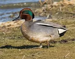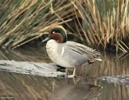 雌鸟头、颈、胸和上背褐色,具不明显的白色羽端,形成鱼鳞状斑,下背和肩褐色,有不规则的白色细斑。翅与雄鸭相同,翼镜也为白色,但较小。嘴基有一白色宽环;腹部灰白色,肛周杂以乌褐色,两肋、浅褐色,羽端具明显的白斑,尾下覆羽褐色,腋羽和翼下覆羽白色。